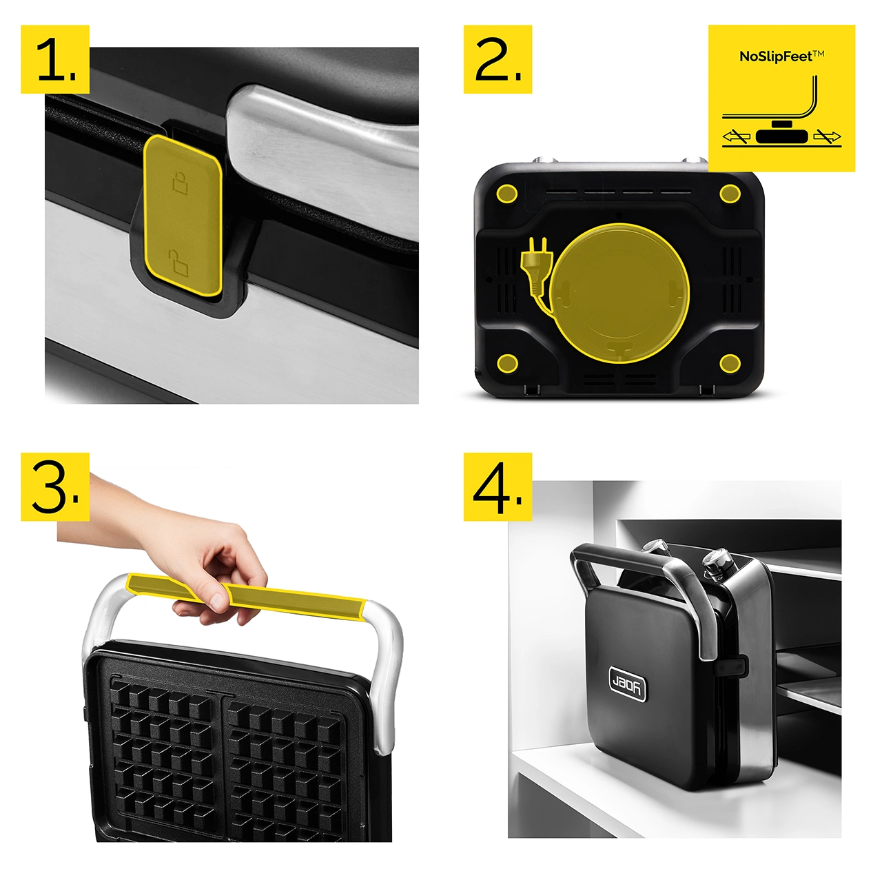 - Technologia NoSlipFeet™ - Antypoślizgowe nóżki - pełna stabilność gofrownicy