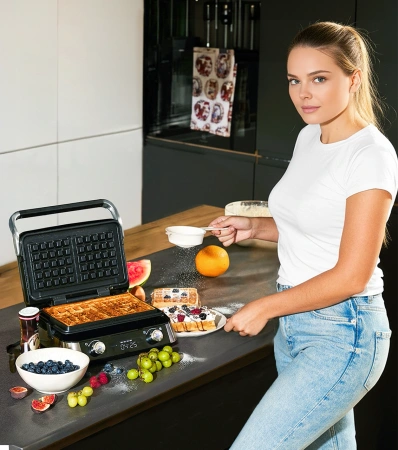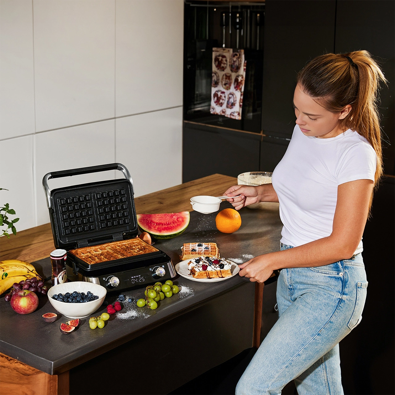 ✔️ Najnowszy model - 2 duże gofry, 5 automatycznych programów, 2 rodzaje chrupkości ciasta i 7 stopni wypieczenia