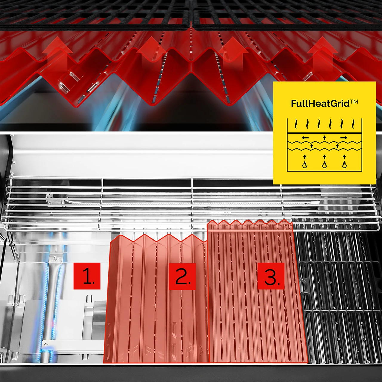 - Technologia FullHeatGrid™ - równomiernie rozprowadza ciepło na całej powierzchni grilla