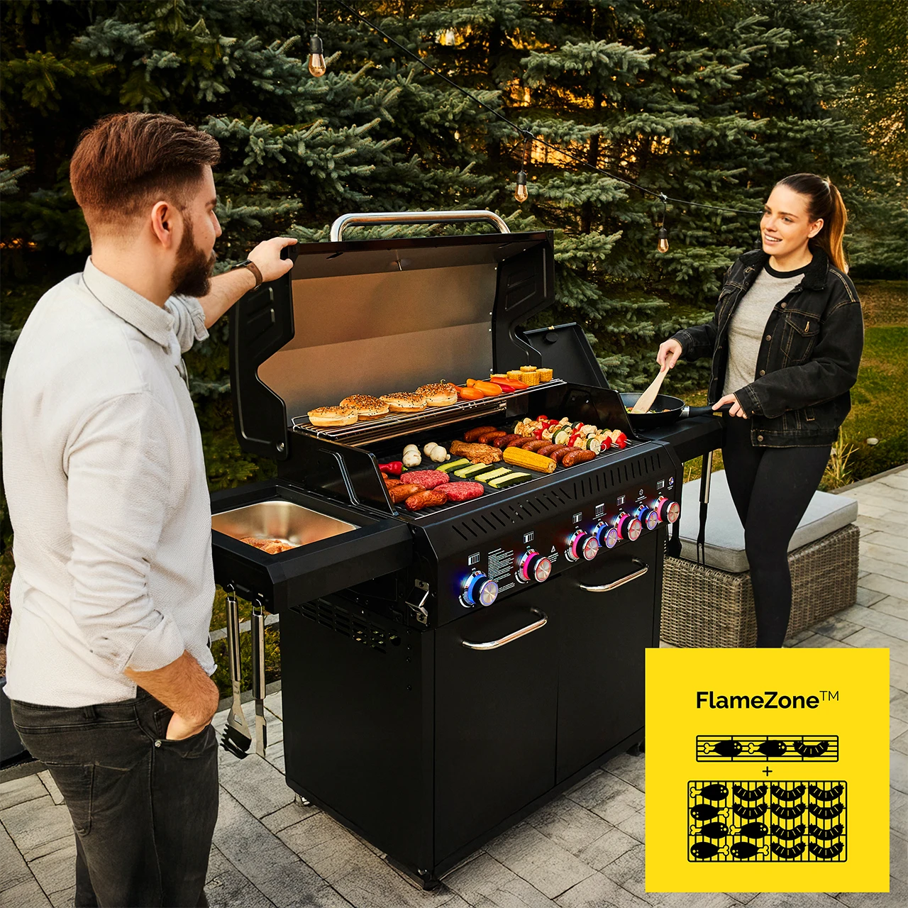 - Technologia FlameZone™ - 5277 cm² - duża powierzchnia grillowania - grilluj nawet 72 kiełbasy śląskie jednocześnie