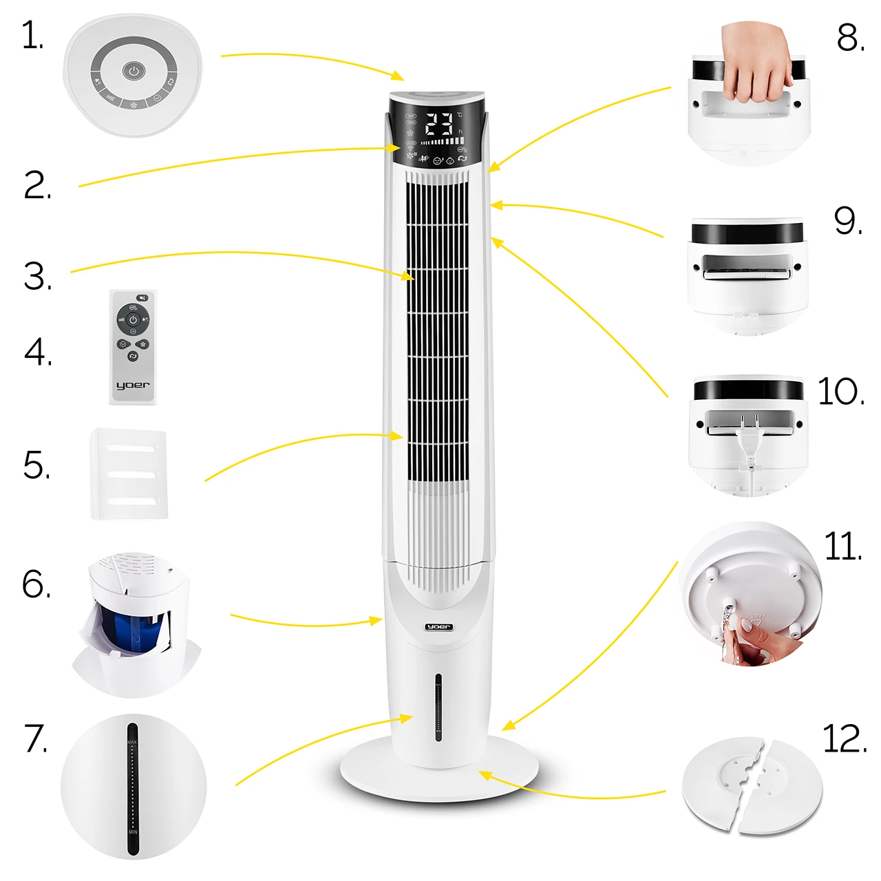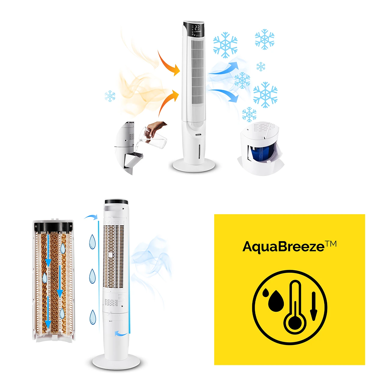 ✅Technologia AquaBreeze™ -chłodzenie ewaporacyjne - napełnij zbiornik wodą, a klimatyzer przepuści powietrze przez specjalny materiał zwilżony wodą ze zbiornika aby je:
