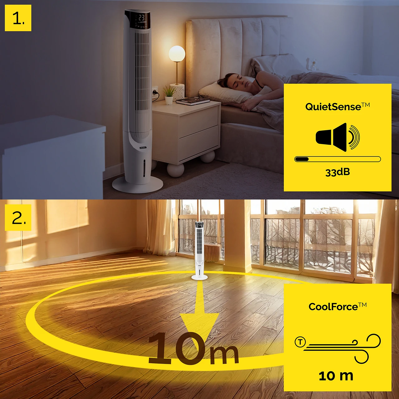 skuteczne chłodzenie w całym pomieszczeniu - nie tylko w najbliższym otoczeniu wentylatora