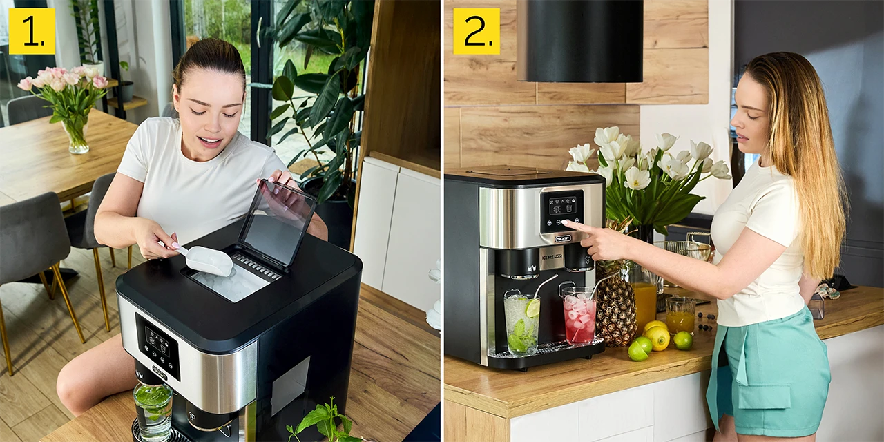 1️⃣Kostkarka do lodu -zawsze świeże kostki lodu, które błyskawicznie schłodzą lemoniadę, drinki i mrożoną kawę – idealne na przyjęcia, spotkania ze znajomymi oraz codzienne chwile relaksu