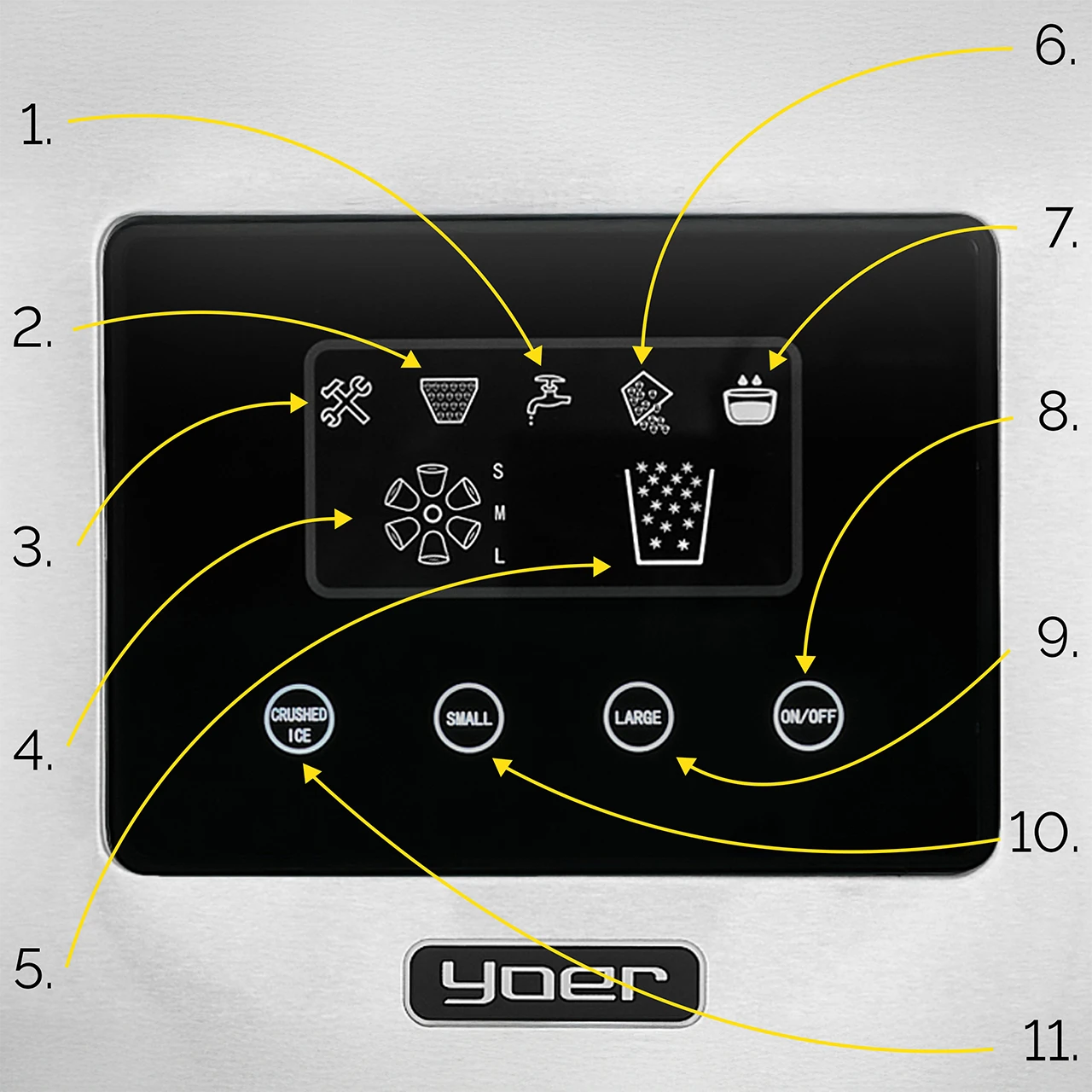Włącznik/wyłącznik (8) -włącz lub wyłącz kostkarkę