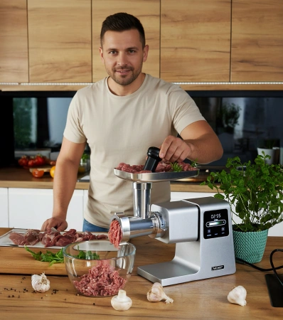 Wysoka wydajność mielenia - szybciej przygotujesz mięso na kotlety, pasztety czy domowe kiełbasy.