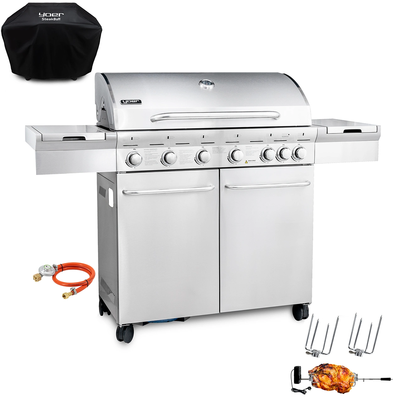 GG02S ZESTAW Grill gazowy Yoer SteakKing 6+1 +Pokrowiec +Rożen
