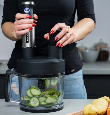 - Podwójne dwuskrzydłowe ostrze - idealnie sprawdzi się, gdy szatkujesz większą ilość składników.