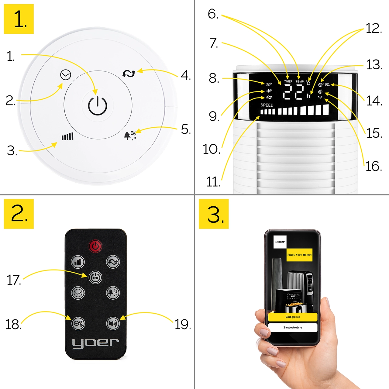 Wentylator kolumnowy i jonizator XXL Yoer Spiro TF03W