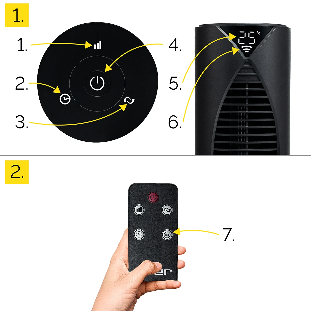 Włącznik/wyłącznik (1) - włącz lub wyłącz wentylator