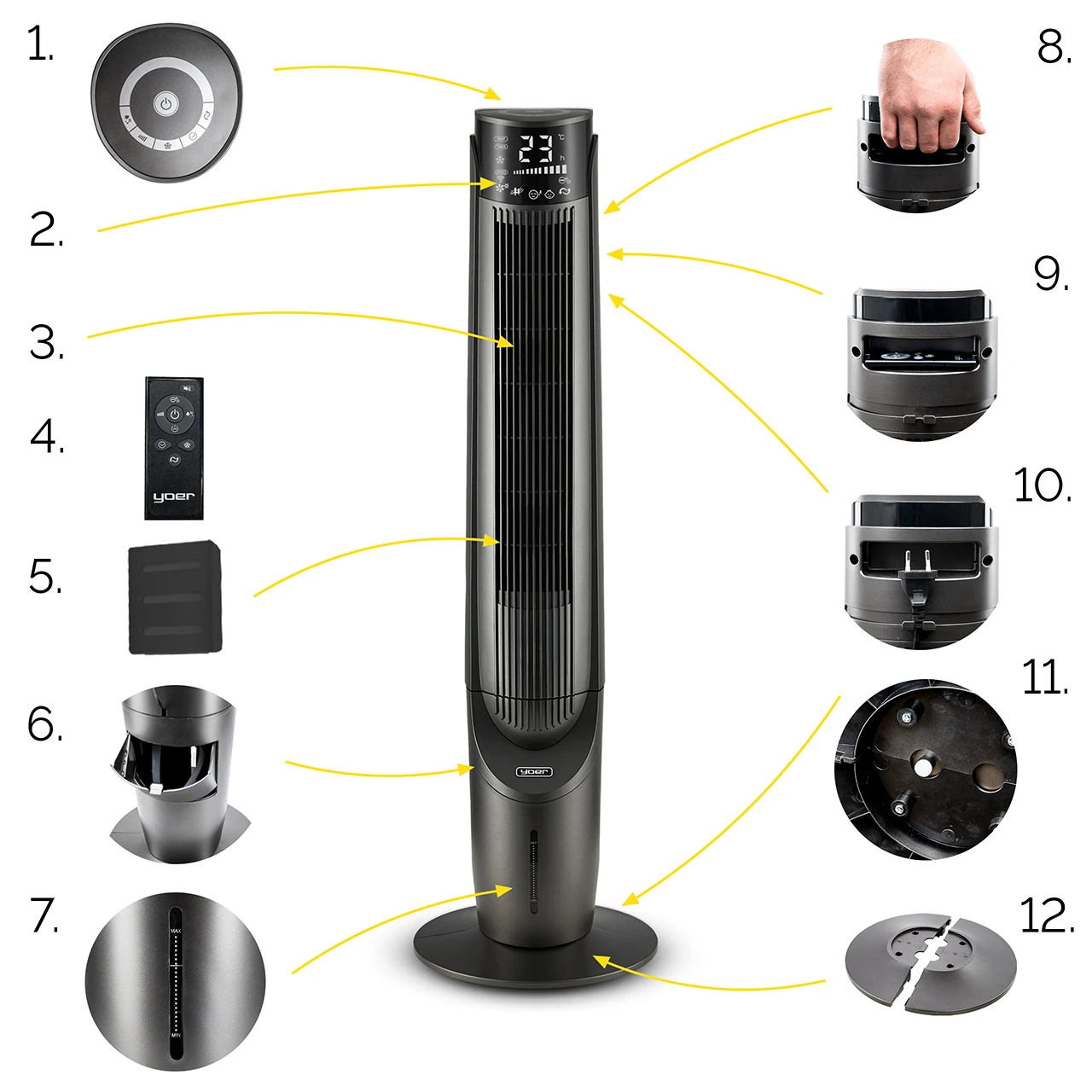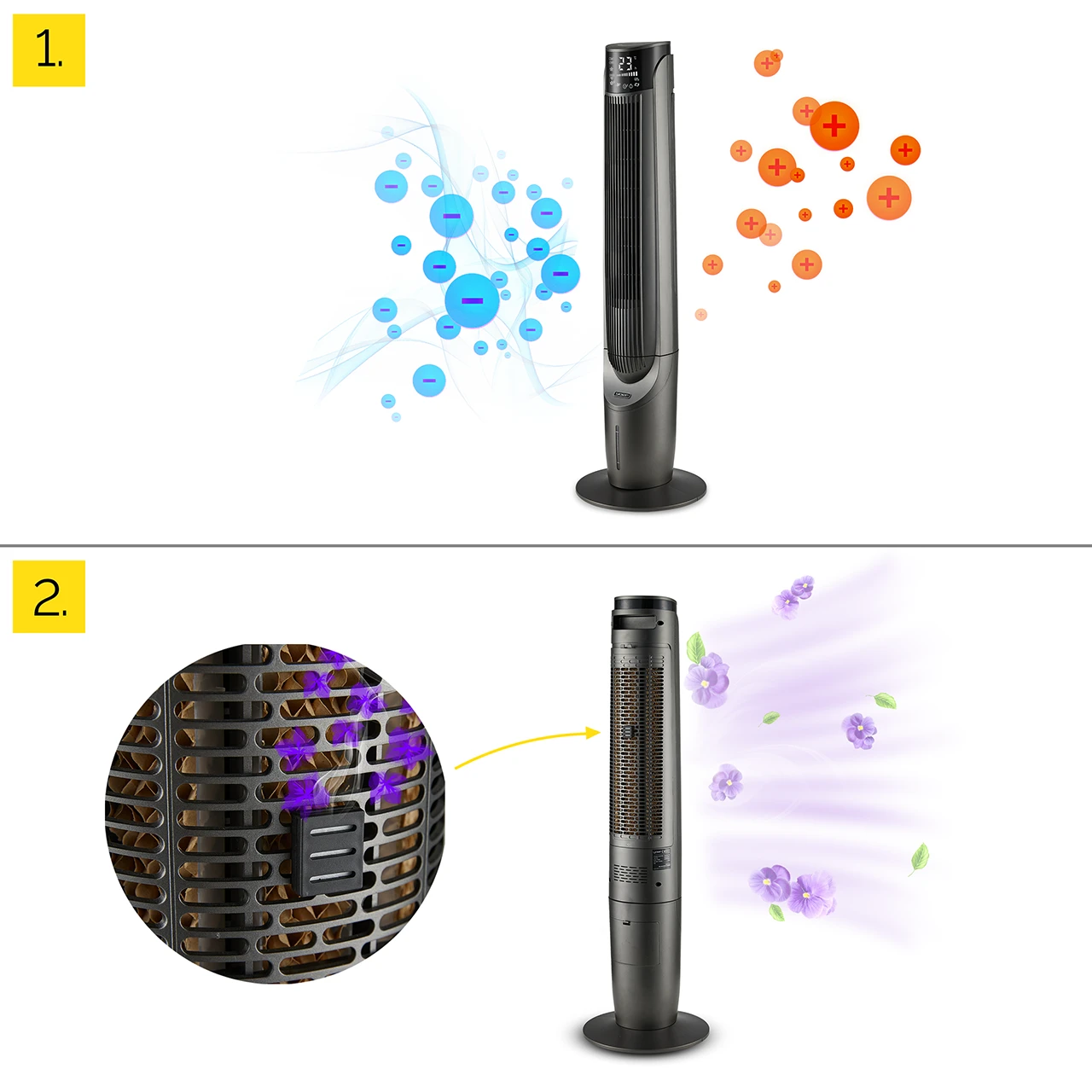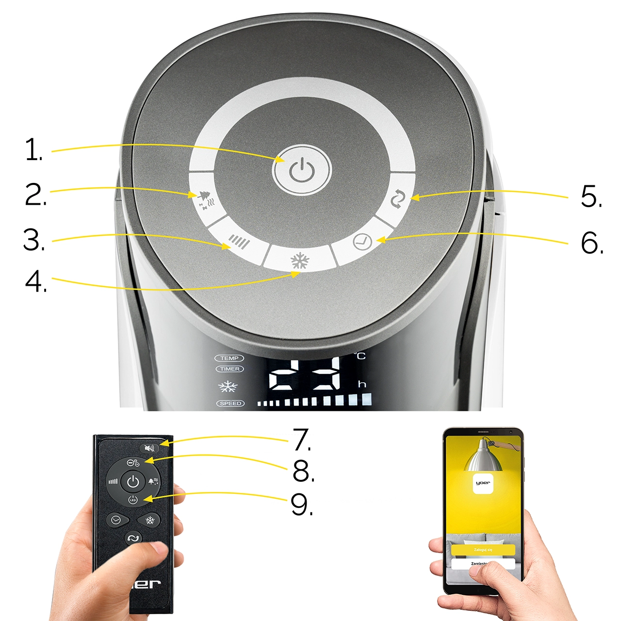 jonizacja, oscylacja, chłodzenie, oczyszczanie, nawilżanie powietrza i aromaterapia