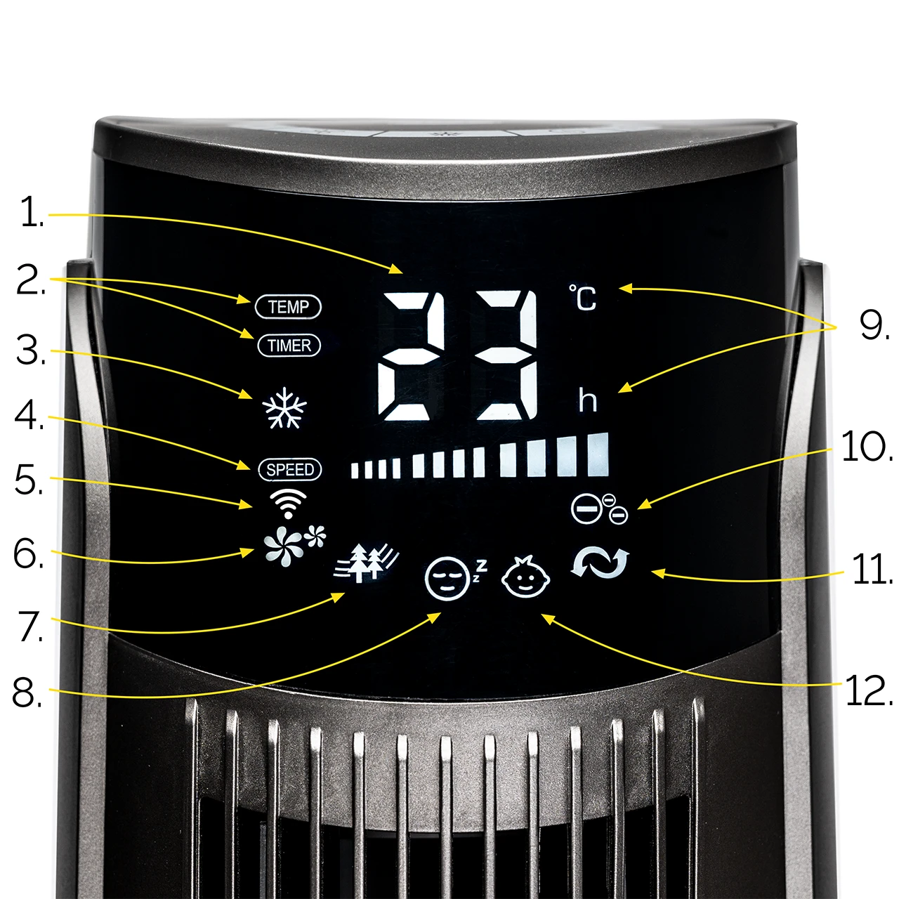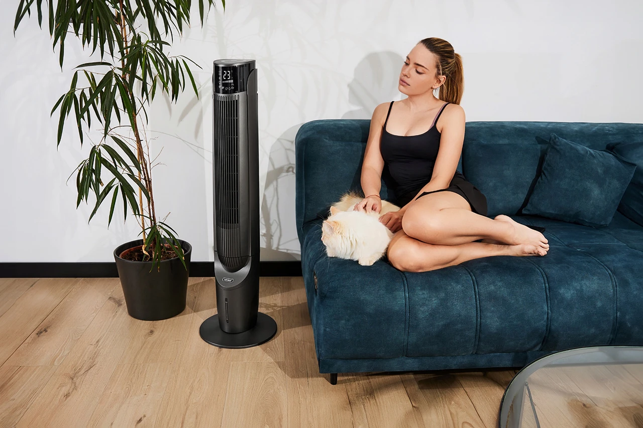 schłodzić - obniża temperaturę w pomieszczeniu 2 razy szybciej w porównaniu do standardowych wentylatorów
